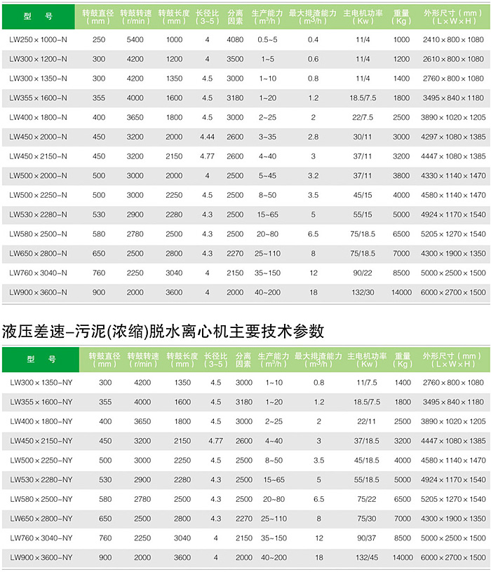 機(jī)械差速-污泥(濃縮)脫水離心機(jī)主要技術(shù)參數(shù)